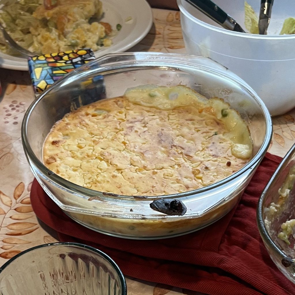I cooked again! I was going to make a chicken pot pie, but I needed to make it gluten-free for someone joining. The lack of gluten-free flours, xanthax gum, etc. deterred me from trying to make a crust. Therefore, I made a chicken pot pie casserole with a cornbread topping made from corn flour. Honestly, it was OK. It didn’t have enough flavor/seasoning to it, in my opinion. However, it was still edible and everyone grabbed a second helping. Success!