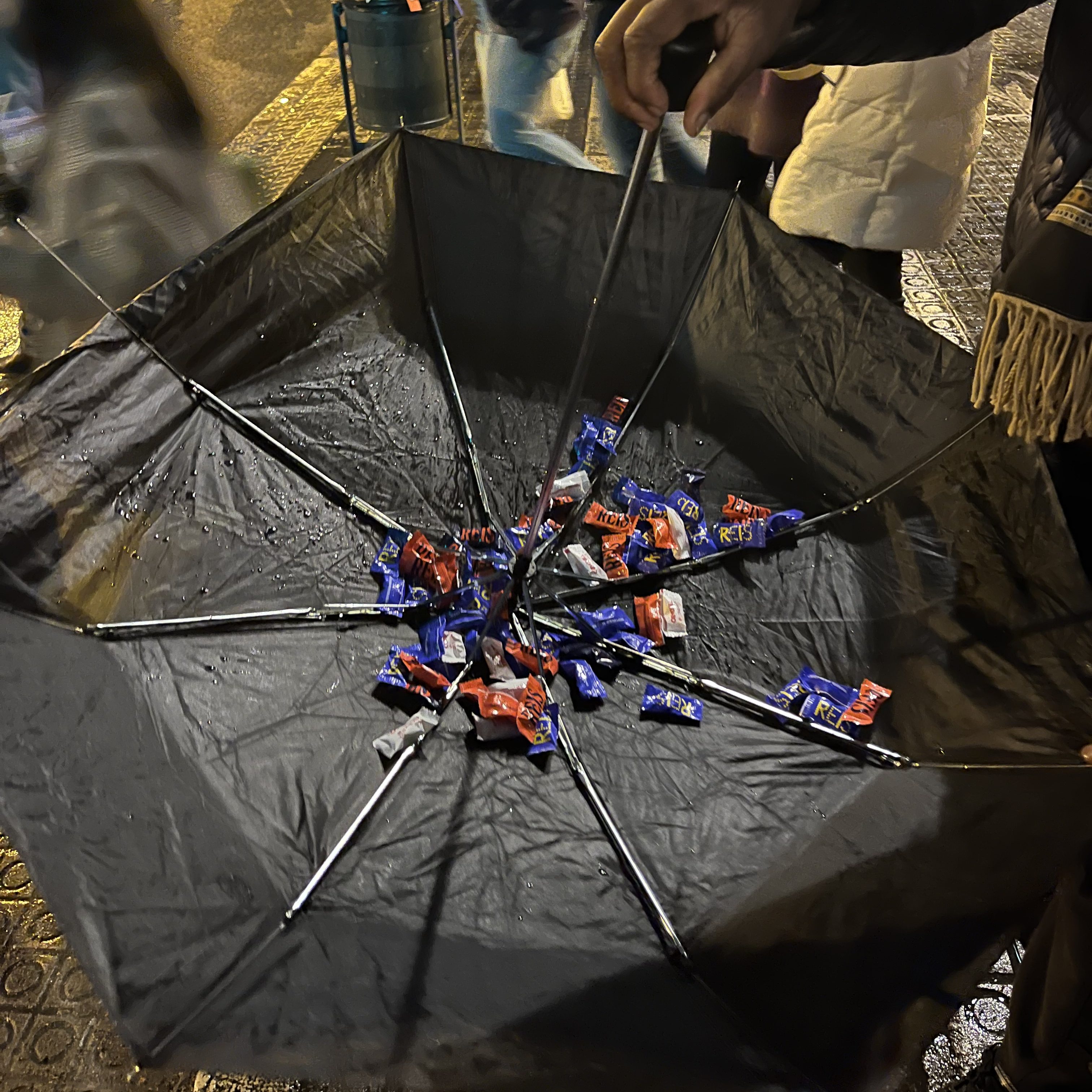 Each year, a big parade marks the event. On one hand, it was sadly raining. On the other hand, turns out umbrellas are a stellar way to catch candy getting flung at you!