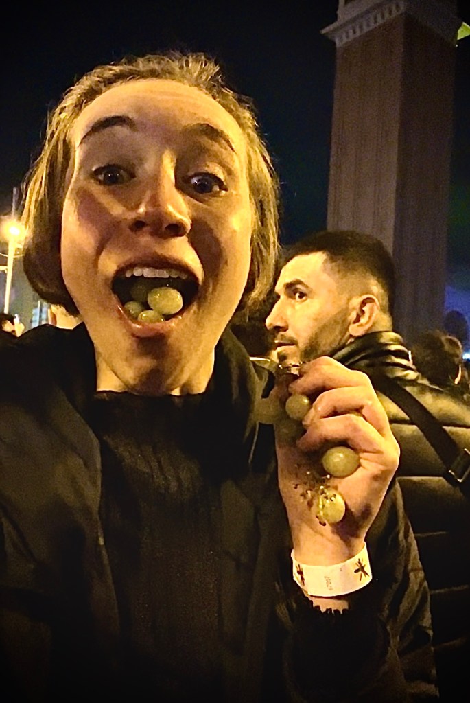 Eating Grapes: Anyways, midnight hit, and the tradition is to eat 12 grapes. Apparently, with each grape you are supposed to think about it and make a wish. I thought you were just supposed to shove a bunch of grapes in your mouth and make a ton of wishes all at the same time. I think it still works in the end.